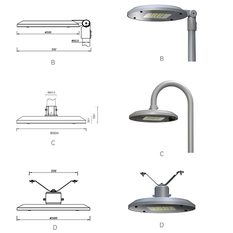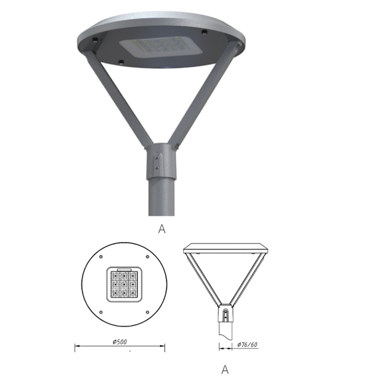 - விளக்கு இடுகை அளவு: 76/60 மிமீ